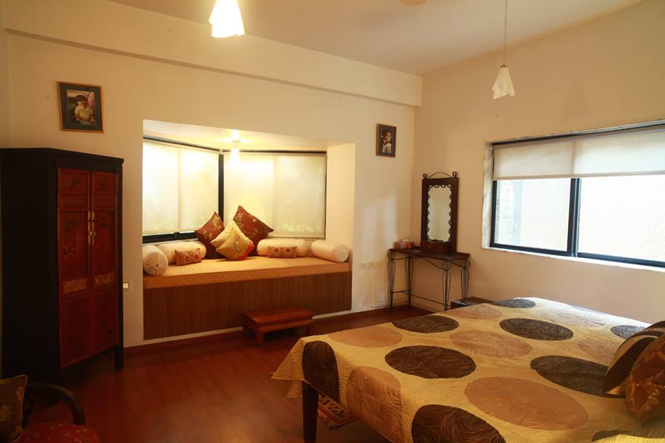 Once you step inside Stein Haus, its like walking into the ‘Secret Garden’, well manicured lawn, a beautiful stone water fountain, an open-air jacuzzi. The first floor opens into a large living room, with an open sit out. Guests can enjoy Khandala’s gentle, cool breeze even on a hot summer’s day on the sit-out, under the shade of a large tree. While you are sipping on a cup of tea/coffee from the deck, you can also get a glimpse of Duke’s nose right infront of you! And during monsoon, enjoy the full glory of Khandala rains, sitting by the steps of the sit.